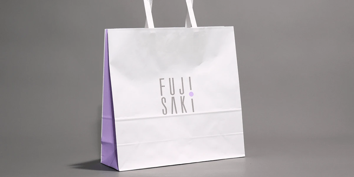 藤崎の紙袋はシンプルな構成で中央に2行にわたるロゴタイプを構成したもの。