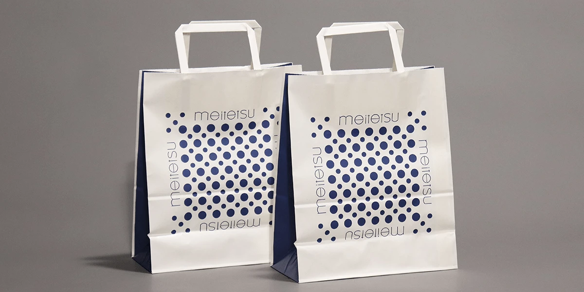 名鉄百貨店の紙袋は中央に構成された101個の青いドットが特徴。
