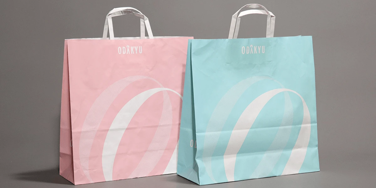 小田急百貨店の紙袋は立体感と明るさを特徴とするデザイン。