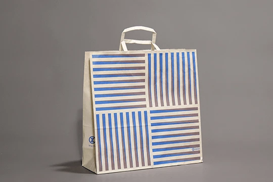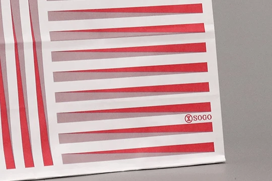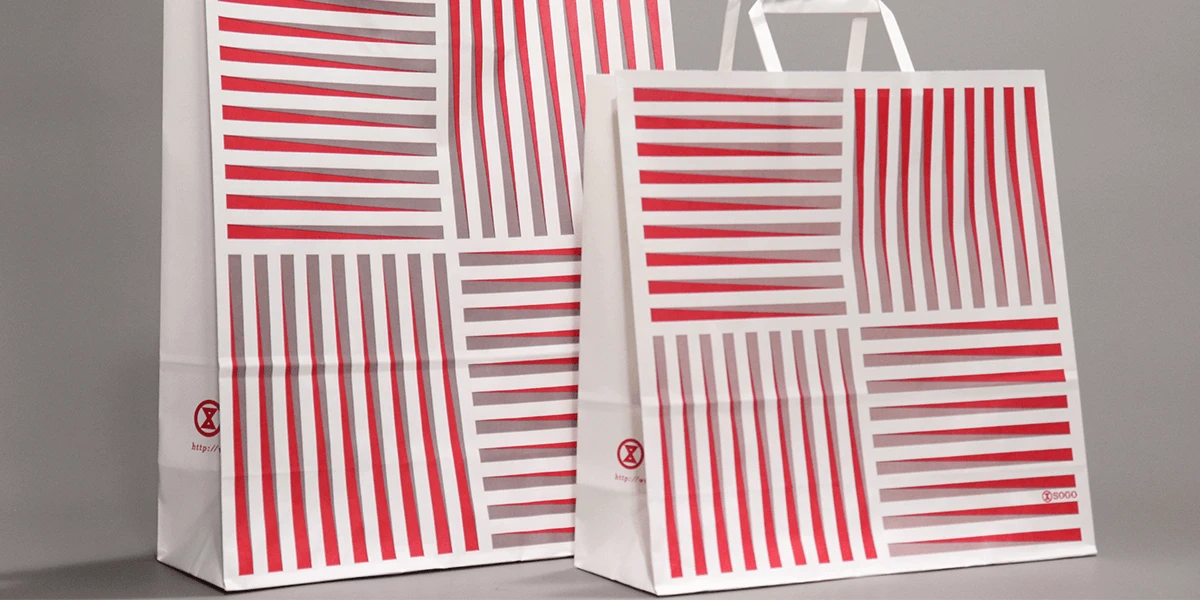 そごうの紙袋は石畳のように互い違いに構成された線状の色面が特徴的な紙袋だ。